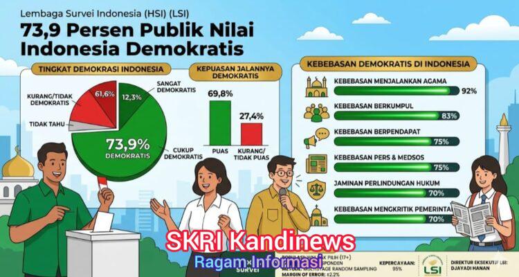Demokrasi RI Survei LSI: Demokrasi RI Dapat Dukungan 73,9 Persen Warga Lingkungan, News|13/04/2026by admin Jakarta – Mayoritas masyarakat Indonesia menilai sistem politik di Tanah Air masih