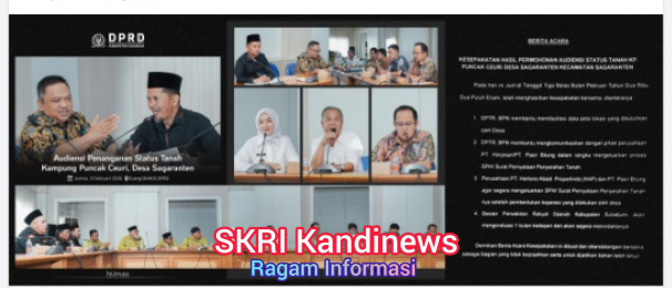 SkriKandiNews.Com – Sukabumi lagi serius nih bahas soal tanah! Pada Jumat, 13 Februari 2026, DPRD Kabupaten Sukabumi menggelar audiensi penting di Ruang BAMUS DPRD. Topiknya: penyelesaian status tanah di Kampung Puncak Ceuri, Desa Sagaranten, Kecamatan Sagaranten.
