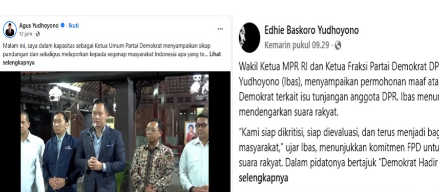 “Malam ini, saya dalam kapasitas sebagai Ketua Umum Partai Demokrat menyampaikan sikap pandangan dan sekaligus melaporkan kepada segenap masyarakat Indonesia apa yang tengah kami lakukan menyikapi situasi terkini di tanah air,” tulis AHY.