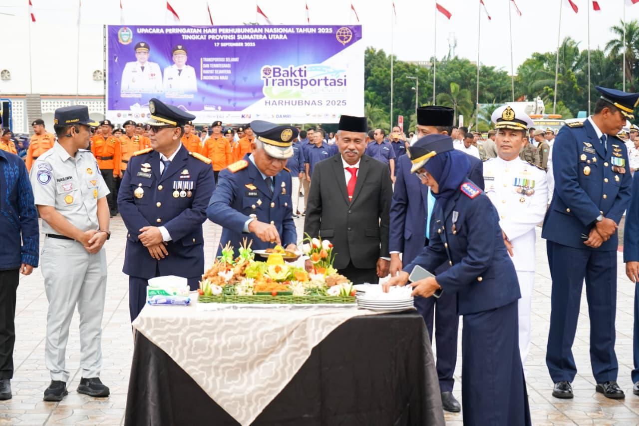 Wakil Gubernur Sumut H. Surya, B.Sc., yang bertindak sebagai Inspektur Upacara dalam kegiatan ini membacakan amanat dari Menteri Perhubungan dan menekankan bahwa Peringatan Harhubnas tahun ini mengusung semangat kolaborasi dalam mewujudkan transportasi yang selamat, aman, nyaman, dan berkelanjutan, serta memperkokoh peran perhubungan sebagai urat nadi pembangunan dan pemersatu bangsa.