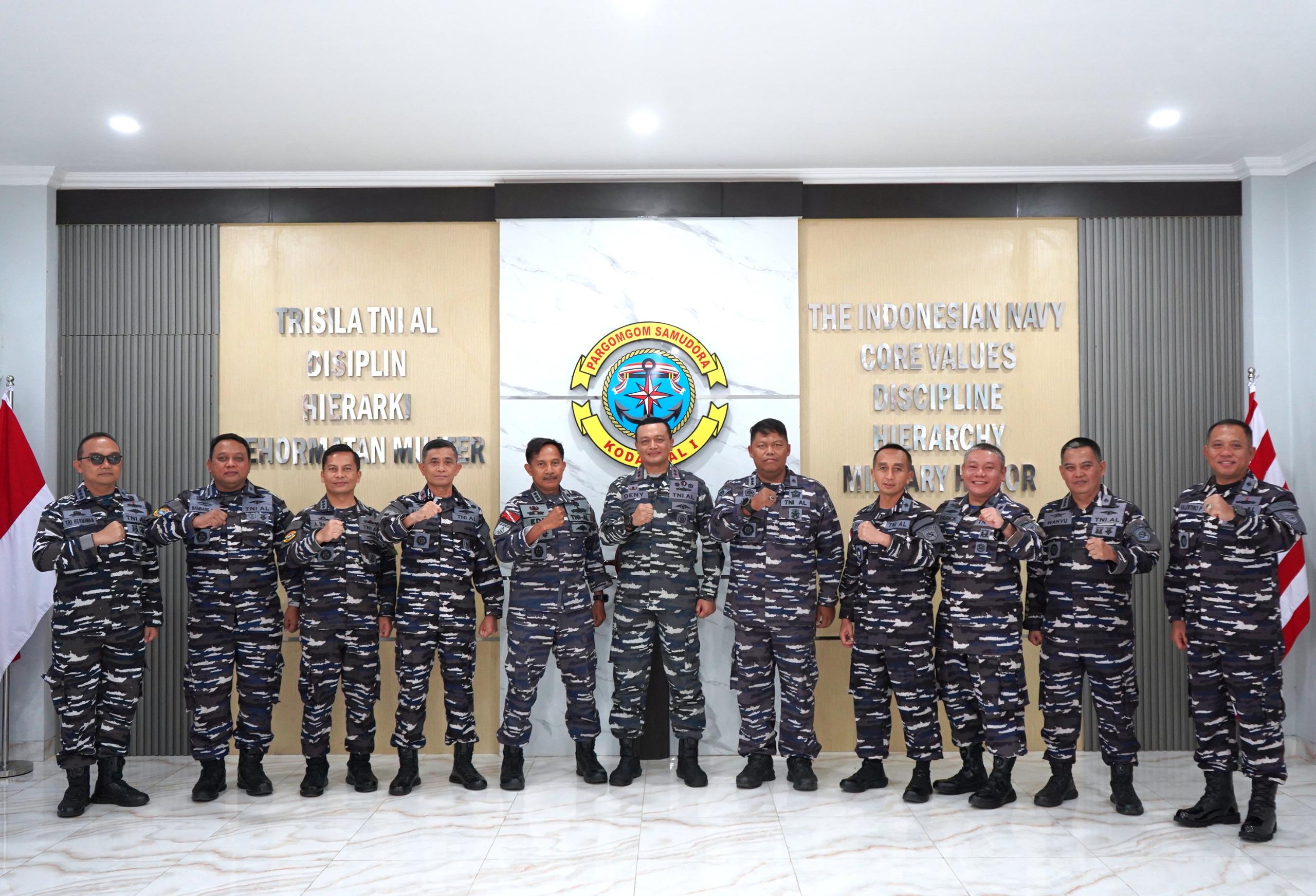 TNI AL, Belawan,- Komandan Komando Daerah Angkatan Laut I (Kodaeral I) Laksamana Muda TNI Deny Septiana, S.I.P., M.A.P., menerima Courtesy Call dari Tim Dinas Sejarah Angkatan Laut (Disjarahal) dipimpin oleh Kolonel Laut (T) Toedi, di Ruang VIP Mako Daeral I, Belawan, Sumatera Utara, Senin (20/10/2025).