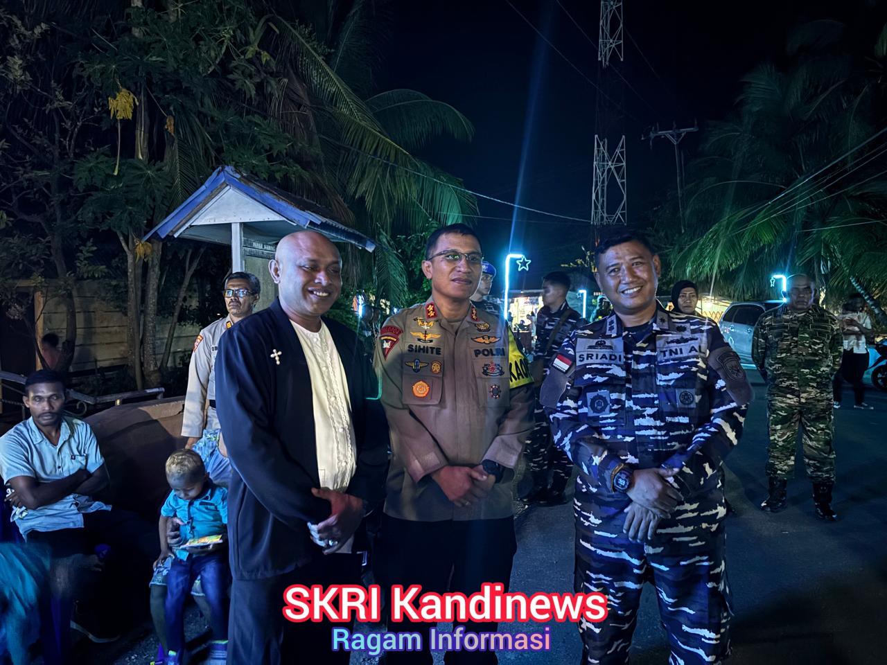 TNI AL, Aru,- Guna memastikan langsung kesiapan personel gabungan serta sarana prasarana penunjang Operasi Lilin Salawaku 2025 yang digelar oleh Kepolisian Resort (Polres) Kepulauan Aru, Komandan Pangkalan TNI AL Aru Letkol Laut (P) Sriadi, S.E., M.Tr.Opsla., turun lapangan bergabung dengan Forkompda melakukan peninjauan langsung ke sejumlah Pos Pengamanan (Pos Pam) Natal dan Tahun Baru (Nataru) di Kota Dobo Ibukota Kabupaten Kepulauan Aru, Rabu (24/12/2025).