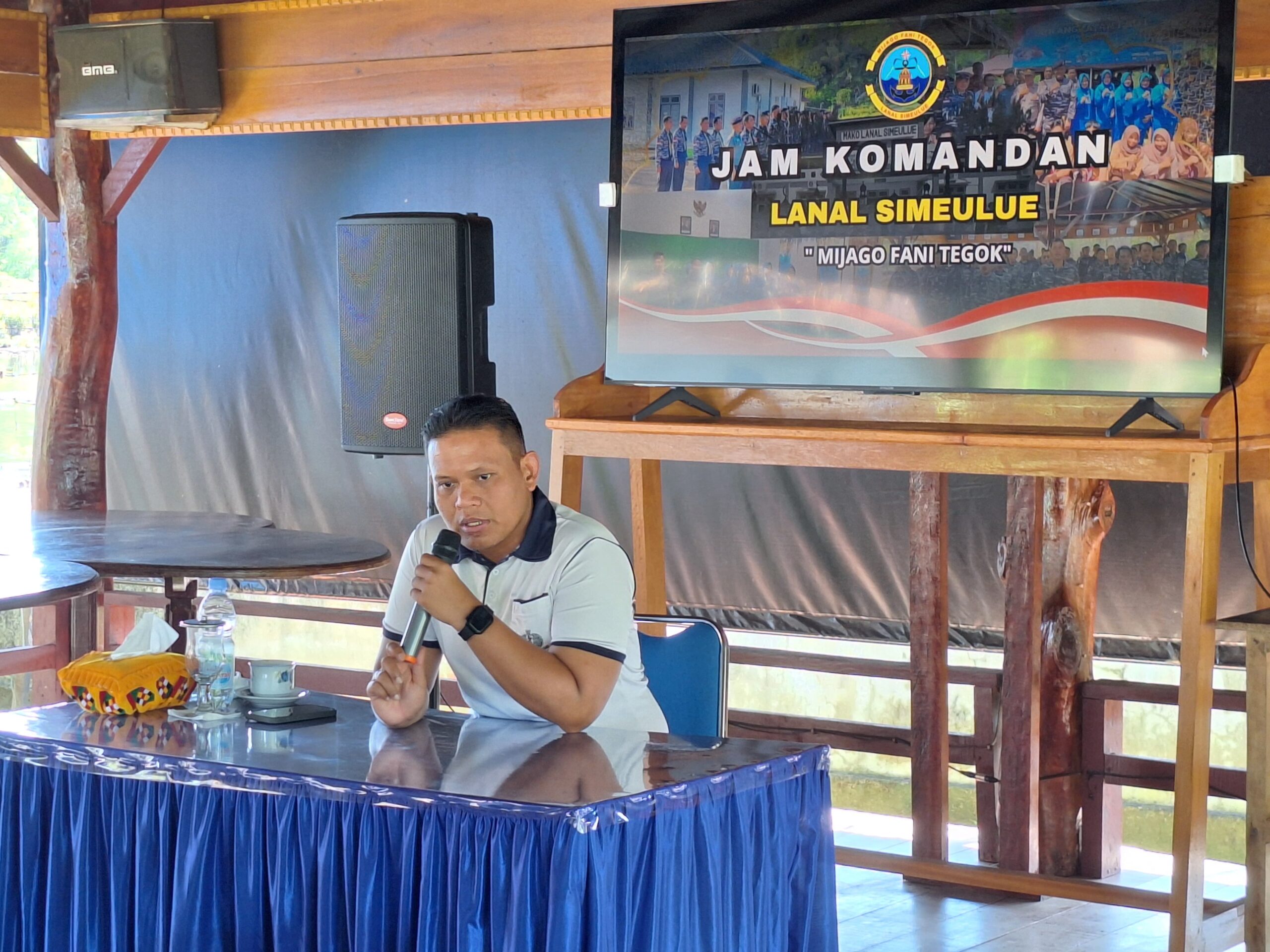 TNI AL, Simeulue,- Komandan Pangkalan TNI AL Simeulue Letkol Laut (P) Oyu Mulia Sukmana S.T., M.T., M.Tr.Opsla., memberikan arahan langsung kepada Prajurit Lanal Simeulue melalui Jam Komandan, bertempat di Markas Komando Lanal Simeulue, Desa Lugu, Kecamatan Simeulue Timur, Kabupaten Simeulue, Jumat (25/4/2025).