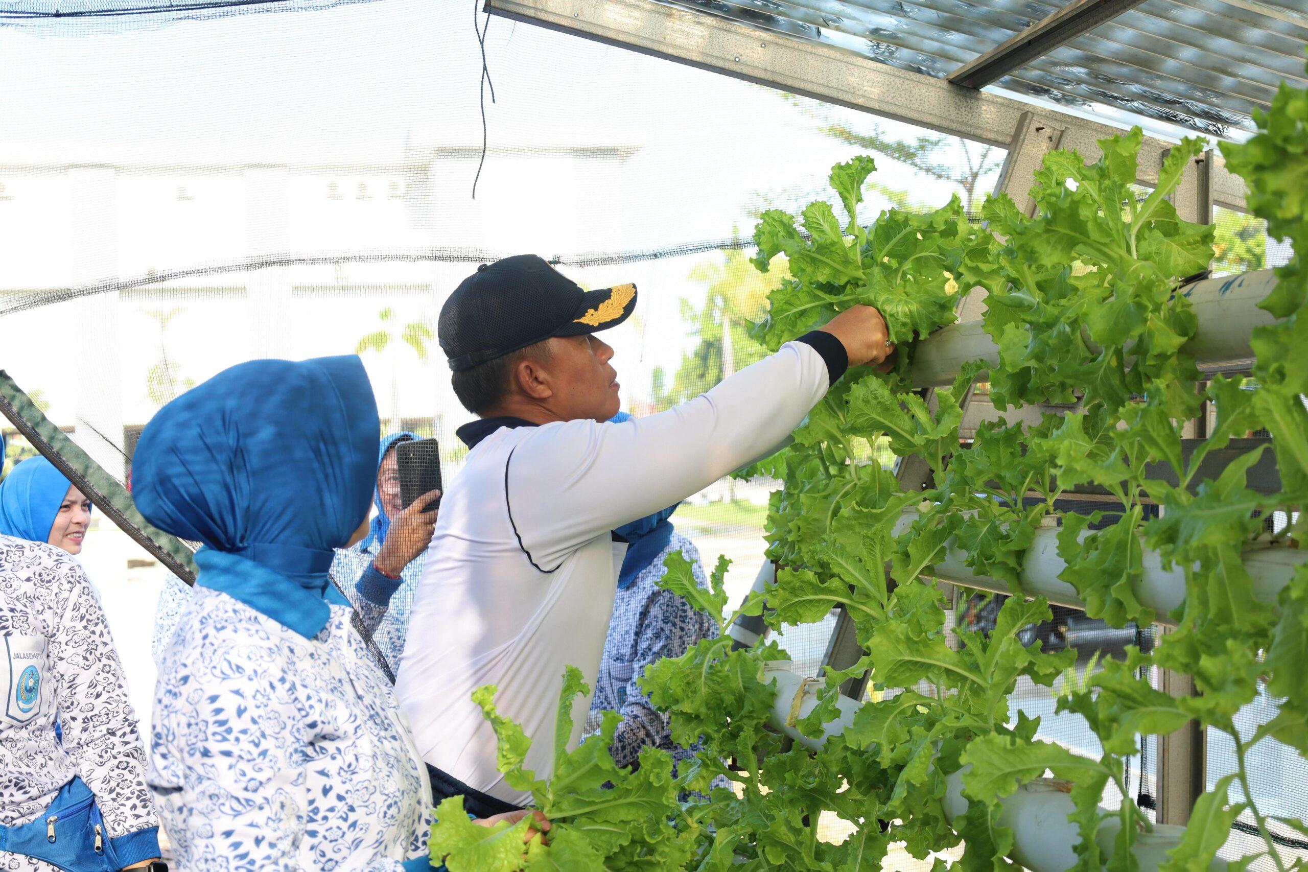 TNI AL, Dumai,- Pangkalan TNI Angkatan Laut Dumai kembali menunjukkan komitmennya dalam mendukung program pemerintah di bidang ketahanan pangan. Bertempat di area kebun ketahanan pangan Lanal Dumai, prajurit bersama ibu-ibu Jalasenastri melaksanakan panen hasil budidaya sayur dan ikan segar, Selasa (23/9/2025).