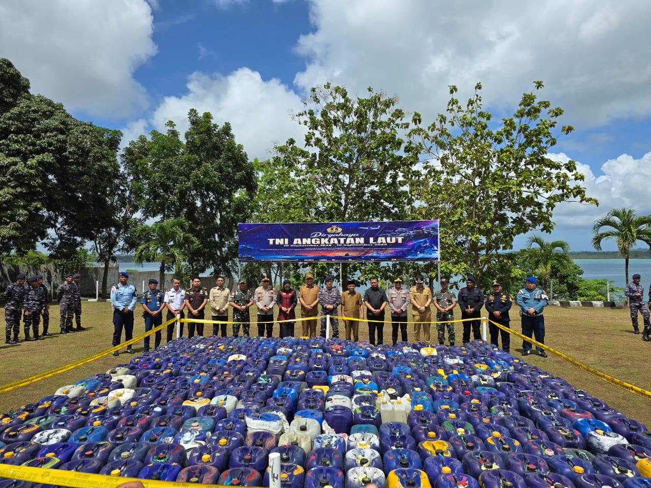 TNI AL, Tual,- Pangkalan TNI Angkatan Laut (Lanal Tual) memusnahkan minuman keras ilegal jenis sopi sebanyak 13.810 liter yang dihadiri oleh Komandan Lanal Tual Kolonel Laut (P) Hananto Dwi P., S.T., M.Tr.Hanla., M.M., Bupati Maluku Tenggara, Wakil Walikota Tual, Ketua DRPD Kota Tual, Dandim 1503/Tual, Danyon 735 NWS, Kapolres Tual, Kapolres Maluku Tenggara, Dansat Brimob, Selasa (09/09/2025).