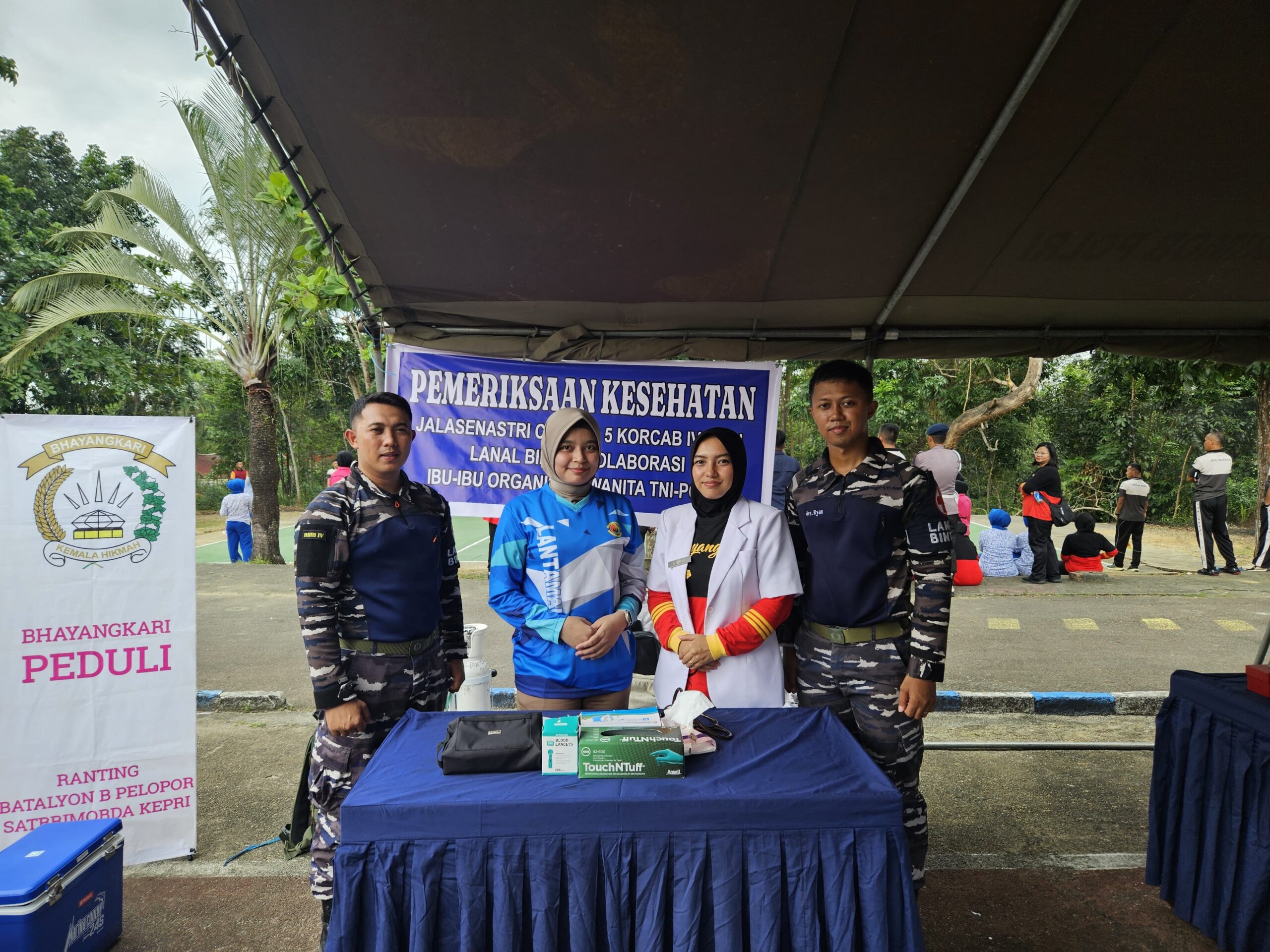 TNI AL, Bintan,- Jalasenastri Cabang 5 Korcab IV Daerah Jalasenastri Armada I Lanal Bintan berkolaborasi dengan ibu-ibu organisasi wanita TNI-Polri melaksanakan kegiatan pemeriksaan kesehatan umum pada kegiatan olahraga bersama TNI-POLRI di Mako Brimob Tanjung Uban, Sabtu (21/06/2025).