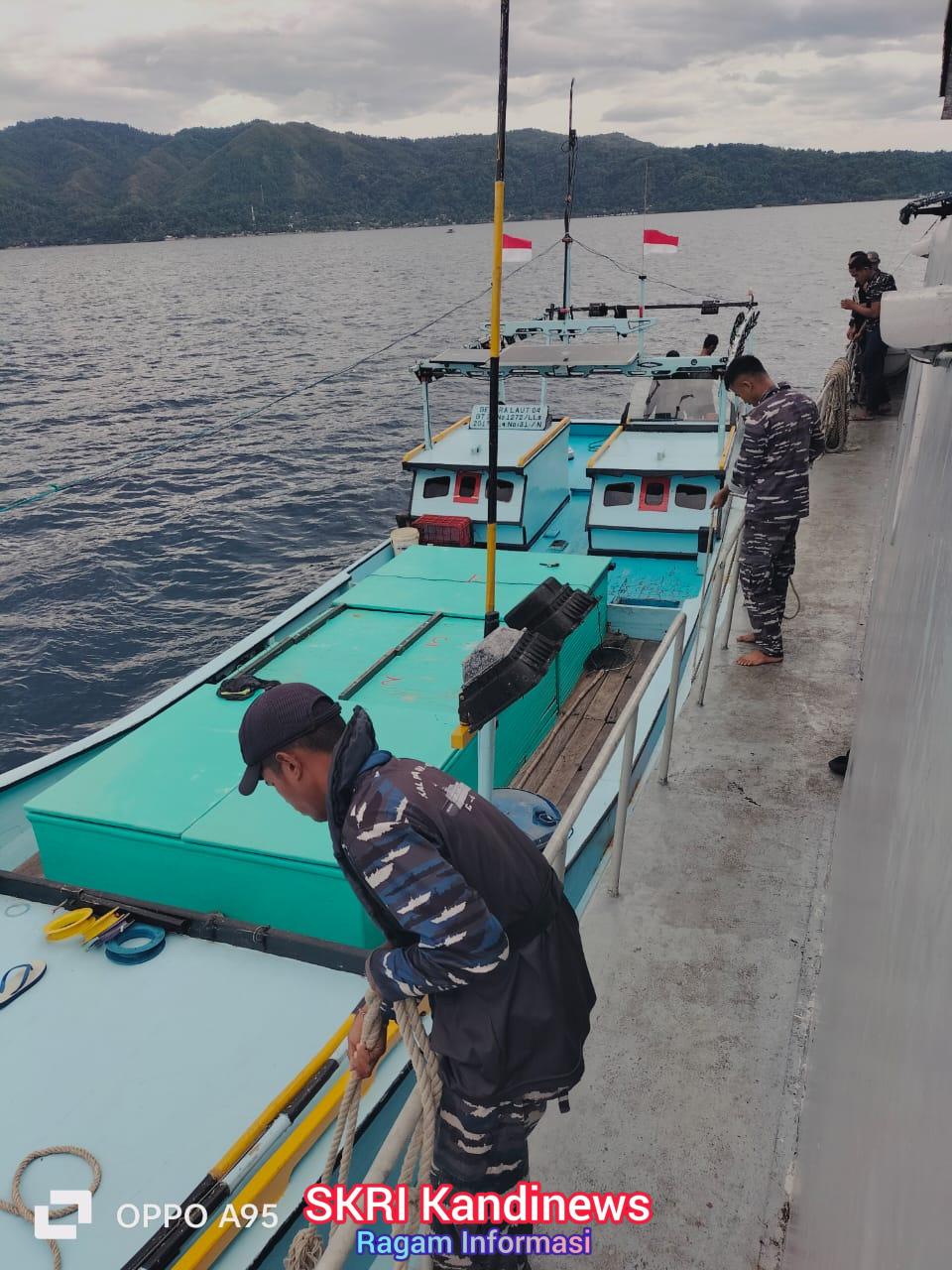 Kapal Angkatan Laut (KAL) Panana melihat kontak kapal terombang-ambing di laut sebelum akhirnya ditarik menuju Pelabuhan Perikanan Tantui.