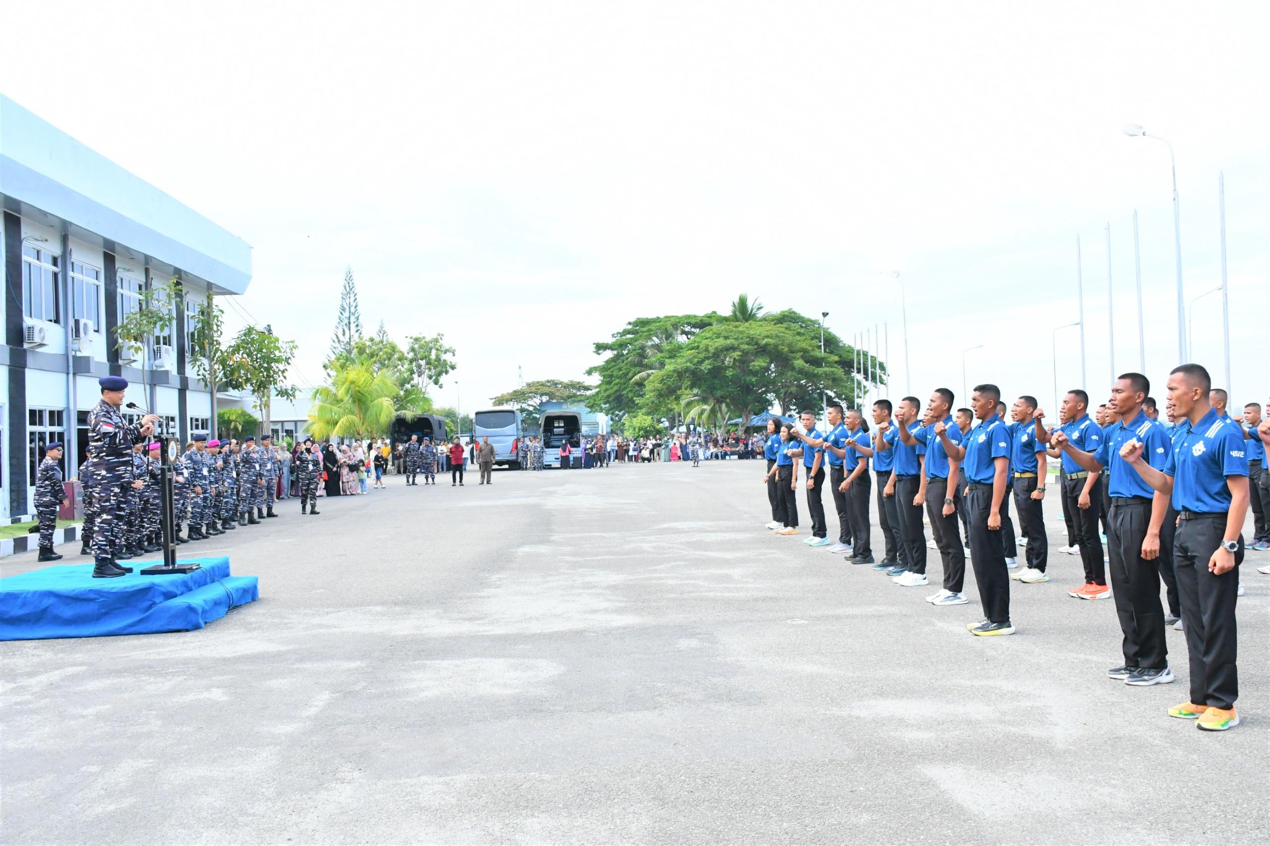 TNI AL, Belawan,- Komandan Komando Daerah Angkatan Laut I (Kodaeral I) Laksamana Muda TNI Deny Septiana, S.I.P., M.A.P., memberi pengarahan sebelum melepas keberangkatan Calon Bintara (Caba) PK Pria dan Wanita serta Calon Tamtama (Cata) PK TNI AL Gelombang II Tahun 2025, bertempat di Lapangan Apel Makodaeral I, Jalan Serma Hanafiah No.01 Belawan, Sumatera Utara, Kamis (25/09/2025).