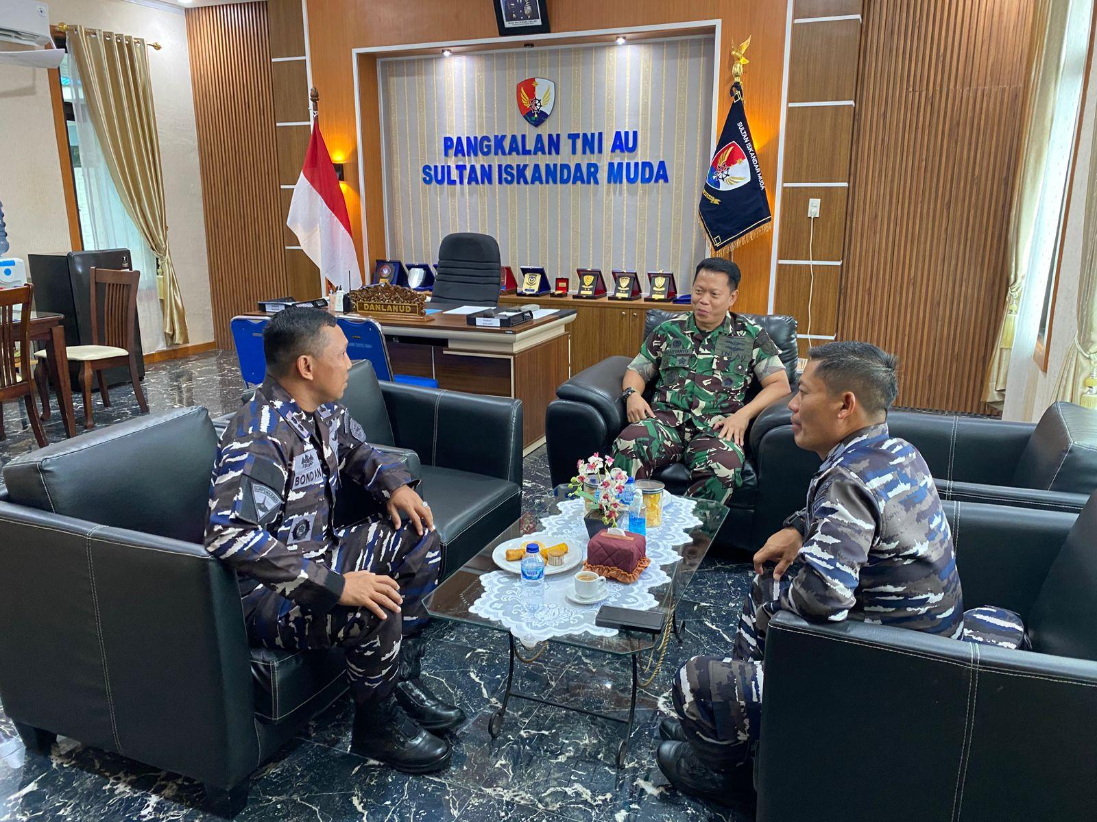 Disela-sela pertemuan, Danlanal Lhokseumawe Letkol Marinir Bondan Wahyu Adi turut hadir dan bergabung.