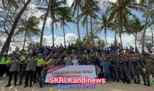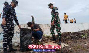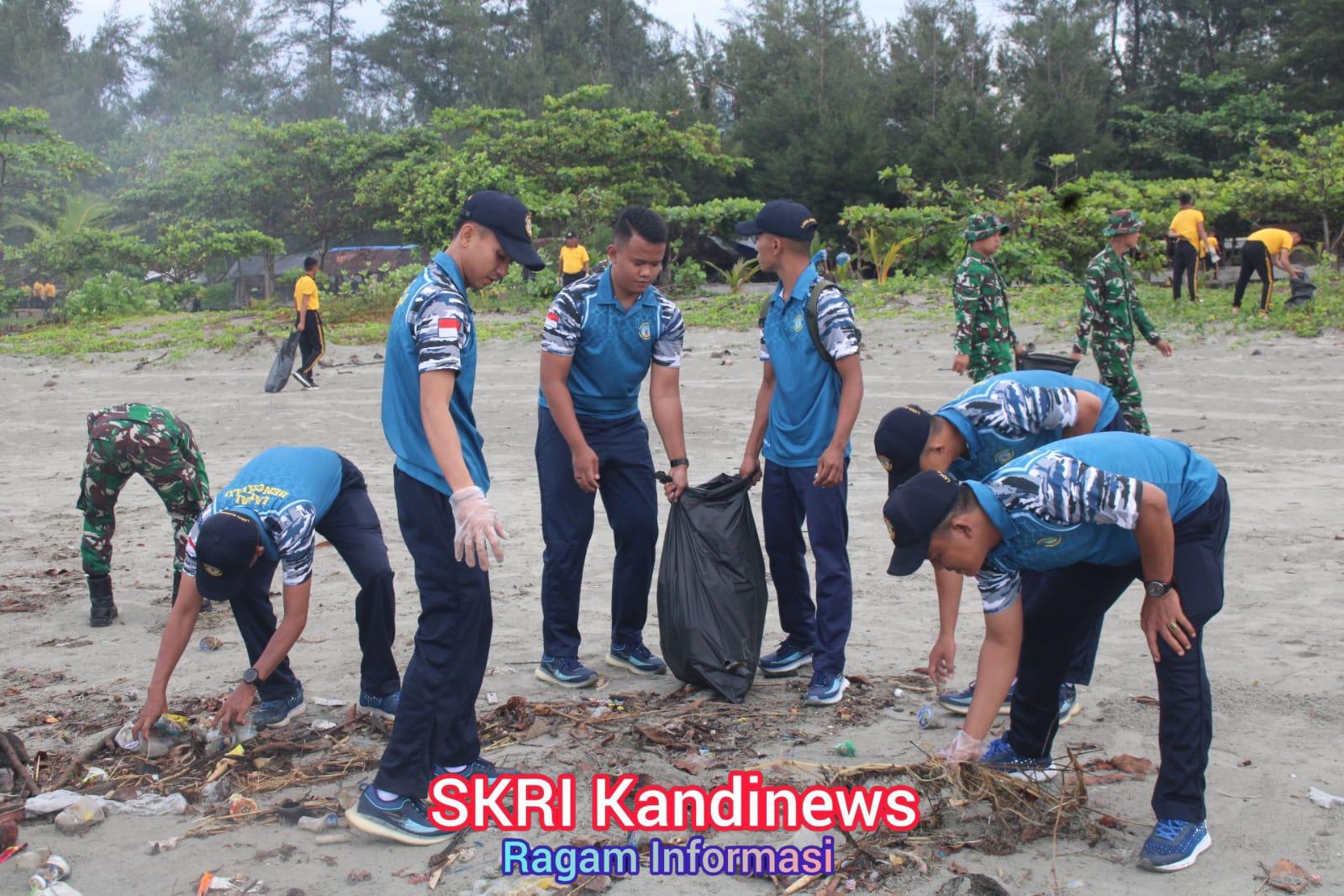 Para personel gabungan melaksanakan pembersihan sampah disepanjang kawasan pantai sebagai bentuk kepedulian terhadap lingkungan hidup serta upaya nyata mendukung terwujudnya wilayah pesisir yang bersih, sehat, dan berkelanjutan.
