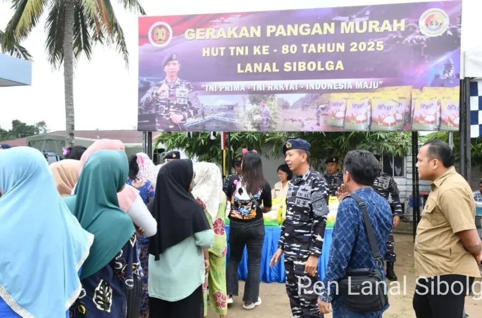 “Melalui Gerakan Pangan Murah ini, TNI ingin hadir ditengah-tengah rakyat dengan memberikan manfaat langsung, sejalan dengan tema HUT Ke-80 TNI Tahun 2025 yaitu TNI Prima-TNI Rakyat-Indonesia Maju”, ujar Danlanal Sibolga.