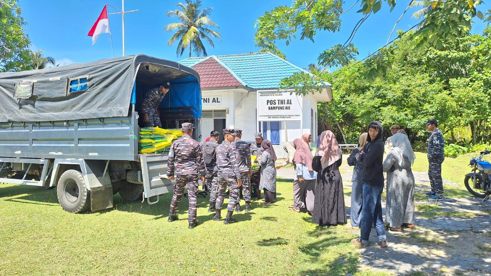 Lanal Simeulue Distribusikan Beras SPHP Kepada Masyarakat Pesisir di Kepulauan Simeulue Provinsi Aceh
