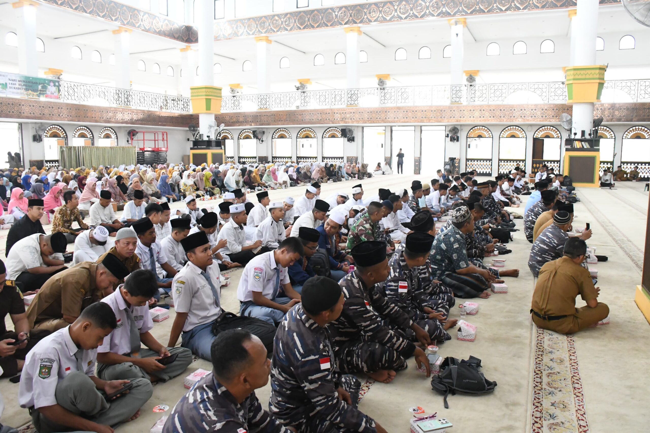 TNI AL, Tanjung Balai,- Danlanal TBA Letkol Laut (P) Wido Dwi Nugraha didampingi Ketua Cabang 7 Korcab I DJA I Ny. Fina Wido Dwi Nugraha beserta Prajurit, PNS dan Pengurus Jalasenastri Cabang 7 Korcab I DJA I, memperingati acara Isra Mi’raj di Masjid Agung Bakrie, Kabupaten Asahan, Selasa (4/2/2025).
