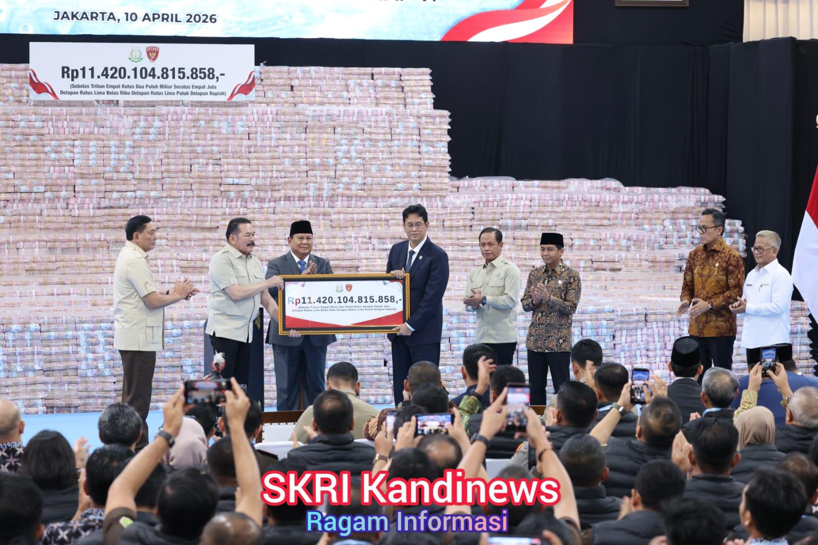 Pada Jumat (10/4) ini, Kejaksaan Agung menyerahkan pengenaan denda administratif dan pemulihan kerugian akibat aktivitas ilegal di dalam kawasan hutan sebesar Rp 11,42 triliun yang disaksikan Prabowo. Ini merupakan hasil penindakan periode Januari-April 2026 yang berasal di antaranya dari denda administratif, PNBP penanganan tindak pidana korupsi, setoran pajak, dan PNBP denda lingkungan hidup.