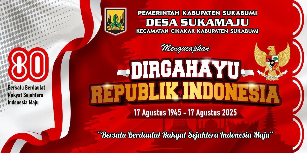 Sukabumi, Kamis 14 Agustus 2025. Dalam semangat memperingati Hari Ulang Tahun Kemerdekaan Republik Indonesia yang ke-80, Pemerintah Desa Sukamaju, Kecamatan Cikakak, Kabupaten Sukabumi, menyampaikan ucapan penuh makna dan harapan untuk bangsa: