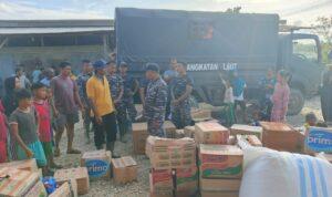 Personel Lanal Sibolga Evakuasi Ibu dan Balita Korban Banjir di Tukka Kabupaten Tapanuli Tengah