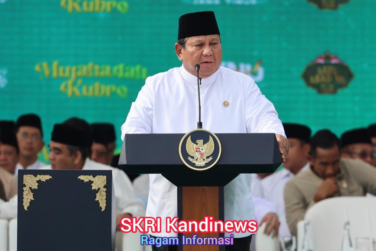 SkriKandiNews.Com,- Malang — Presiden RI Prabwo Subianto mengatakan makin bersemangat ketika berpidato pagi hari di depan ratusan ribu kiai, nyai, dan santri. Semangat itu bahkan tecermin pada pembukaan pidatonya pada acara Mujahadah Kubro Satu Abad Nahdlatul Ulama (NU) di Malang, Jawa Timur, Minggu (8/2).