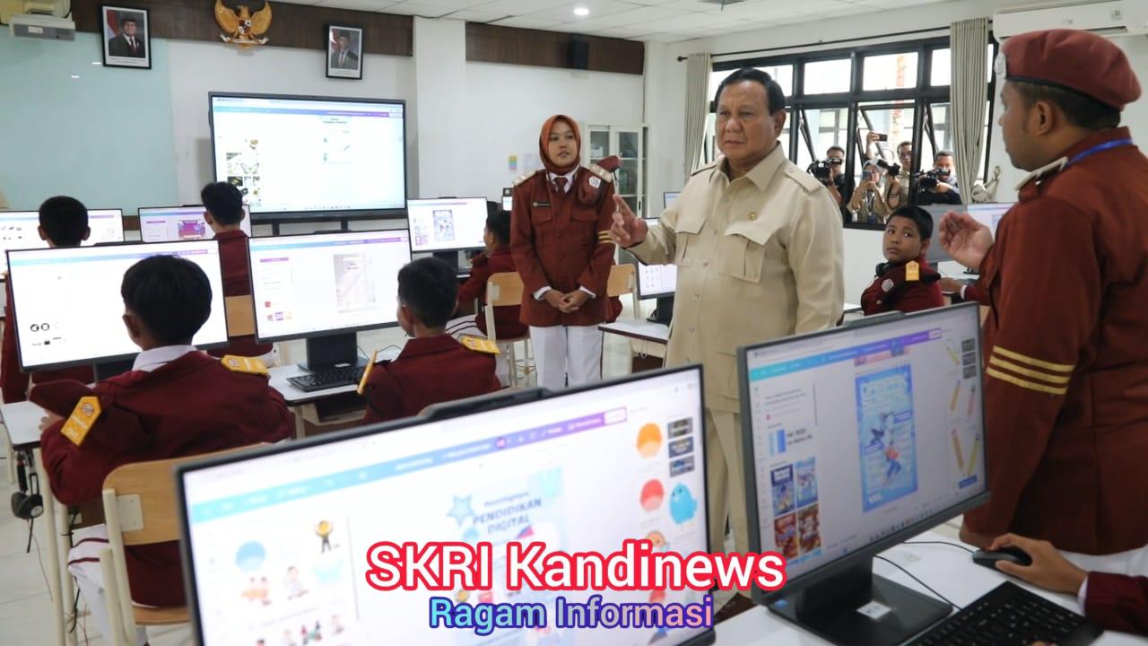 Kemudian, Prabowo berjalan untuk meninjau sejumlah fasilitas sekolah, mulai dari ruang kelas. Prabowo tampak mengamati proses belajar-mengajar yang tengah dilakukan.