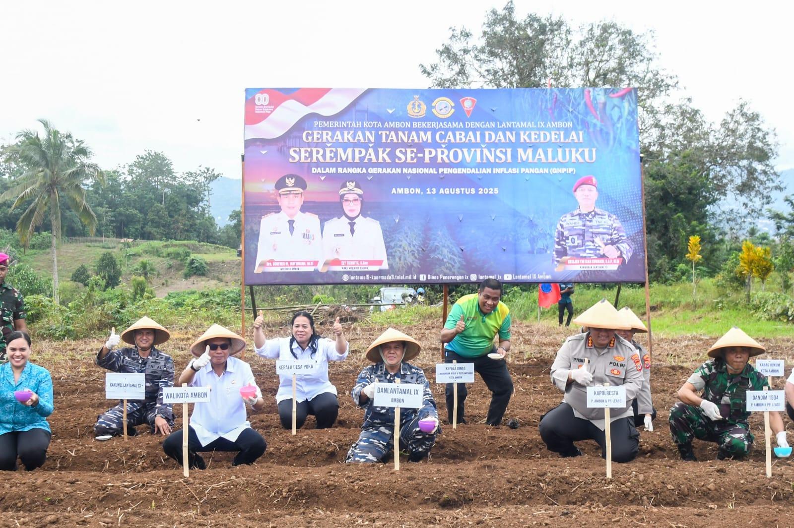 Sinergi Kodaeral IX Ambon, Pemerintah Daerah, dan Lintas Iinstansi Dorong Ketahanan Pangan Melalui Gerakan Tanam Serentak Cabai dan Kedelai