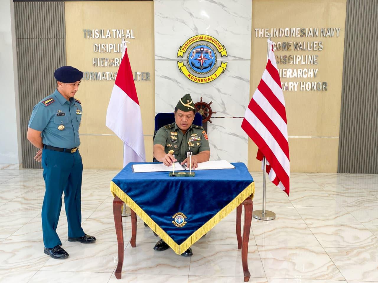 TNI AL, Belawan,- Komandan Kodaeral I Laksamana Muda TNI Deny Septiana, S.I.P., M.A.P. diwakili Wadan Kodaeral I Kolonel Laut (P) Fajar Tri Rohadi, S.E., menerima kunjungan kerja Tim Satgas Penatausahaan Pemanfaatan Barang Milik Negara di Lingkungan Kemhan dan TNI yang dipimpin oleh Brigadir Jenderal TNI Jhoni Aritonang., S.E,. M.Han,. FRMP., beserta rombongan, bertempat di Ruang VIP Makodaeral I, Rabu (27/8/2025).
