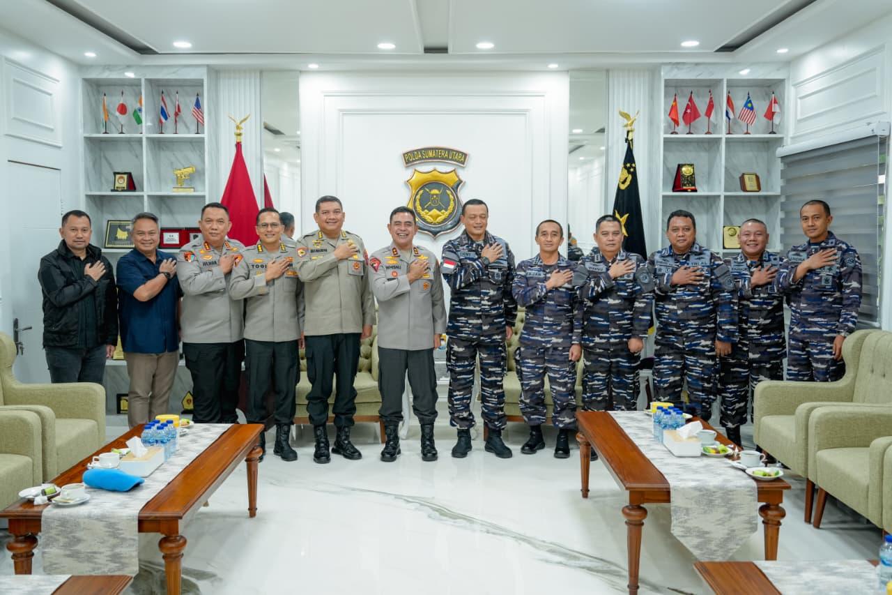 Kapolda Sumut yang didampingi para Pejabat Utama Polda Sumut menyambut hangat atas kunjungan Komandan Kodaeral I beserta rombongan, serta menyampaikan apresiasi dan ucapan selamat datang di Mapolda Sumut.